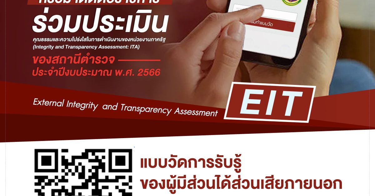 ขอเชิญประชาชนผู้มารับบริการหรือมาติดต่อราชการร่วมประเมิน คุณธรรมและความโปร่งใสในการดำเนินงานของหน่วยงานภาครัฐ