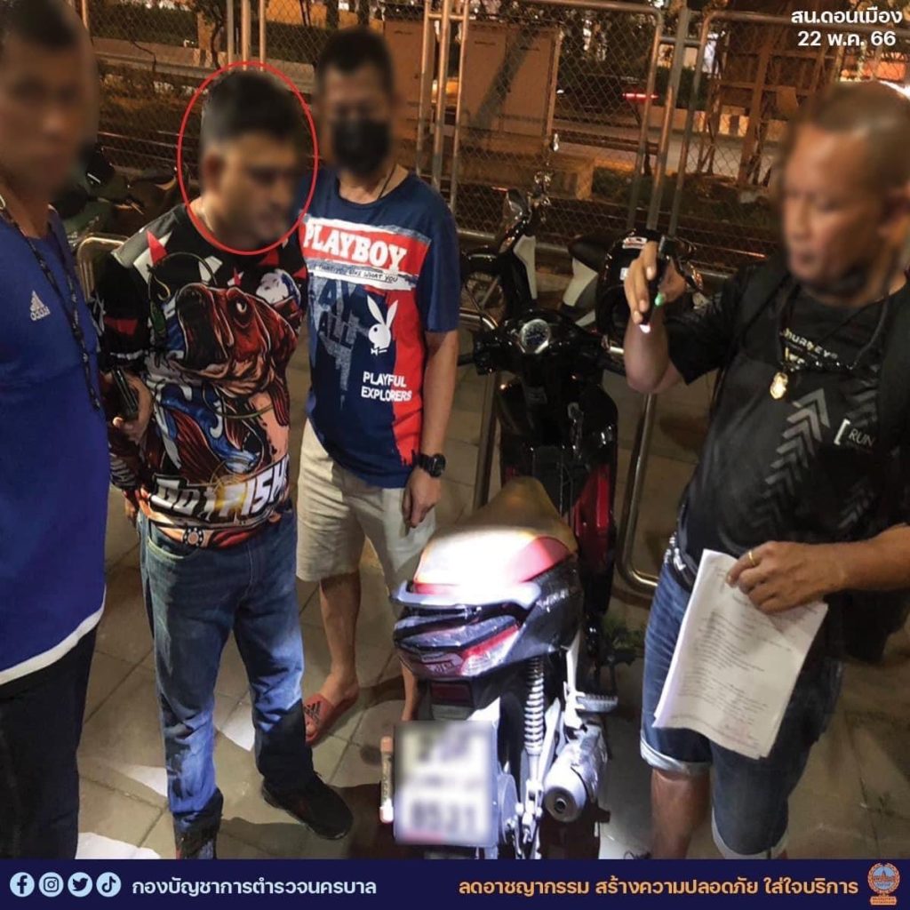 -สน.ดอนเมือง จับกุมผู้ต้องหาตามหมายจับในความผิดฐาน “ลักทรัพย์ในเวลากลางคืน” เมื่อวันที่ 28 เม.ย.66 มีผู้เสียหายเดินทางมาแจ้งความร้องทุกข์กับพนักงานสอบสวน สน.ดอนเมือง ว่าเมื่อวันที่ 27 เม.ย. 66 เวลาประมาณ 18.00 น.ได้จอดรถจักรยานยนต์ ยี่ห้อ ฮอนด้า คลิ๊ก สีขาว ราคาประมาณ 70,000 บาท ไว้ที่ลานจอดรถริมถนนเชิดวุฒากาศ แล้วไปทำงาน จนกระทั่งวันที่ 28 เม.ย. 2566 เวลาประมาณ 09.00 น.กลับมายังที่จอดรถปรากฏว่ารถได้หายไป เจ้าหน้าที่ตำรวจฝ่ายสืบสวน สน.ดอนเมือง ได้ร่วมกันสืบสวนหาข่าวและตรวจสอบ จนทราบผู้ก่อเหตุคือ นายตินฯ (สัญชาติเมียนมา) และวันที่ 20 พ.ค.2566 ฝ่ายสืบสวนสน.ดอนเมืองสามารถติดตามจับกุมผู้ต้องหาได้ ผู้ต้องหาให้การยอมรับว่าเคยก่อคดีลักทรัพย์และถูกดำเนินคดีมาหลายครั้ง