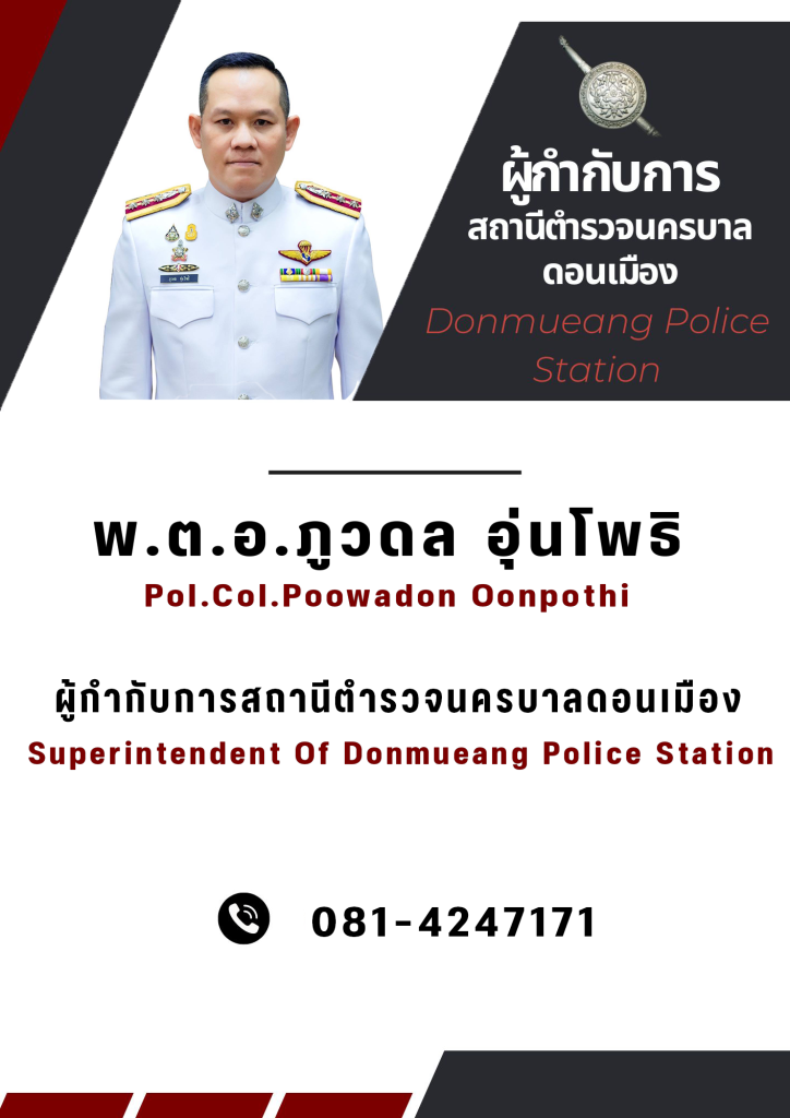 1.แจ้งเรื่องได้ที่ ผกก.สน.ดอนเมือง